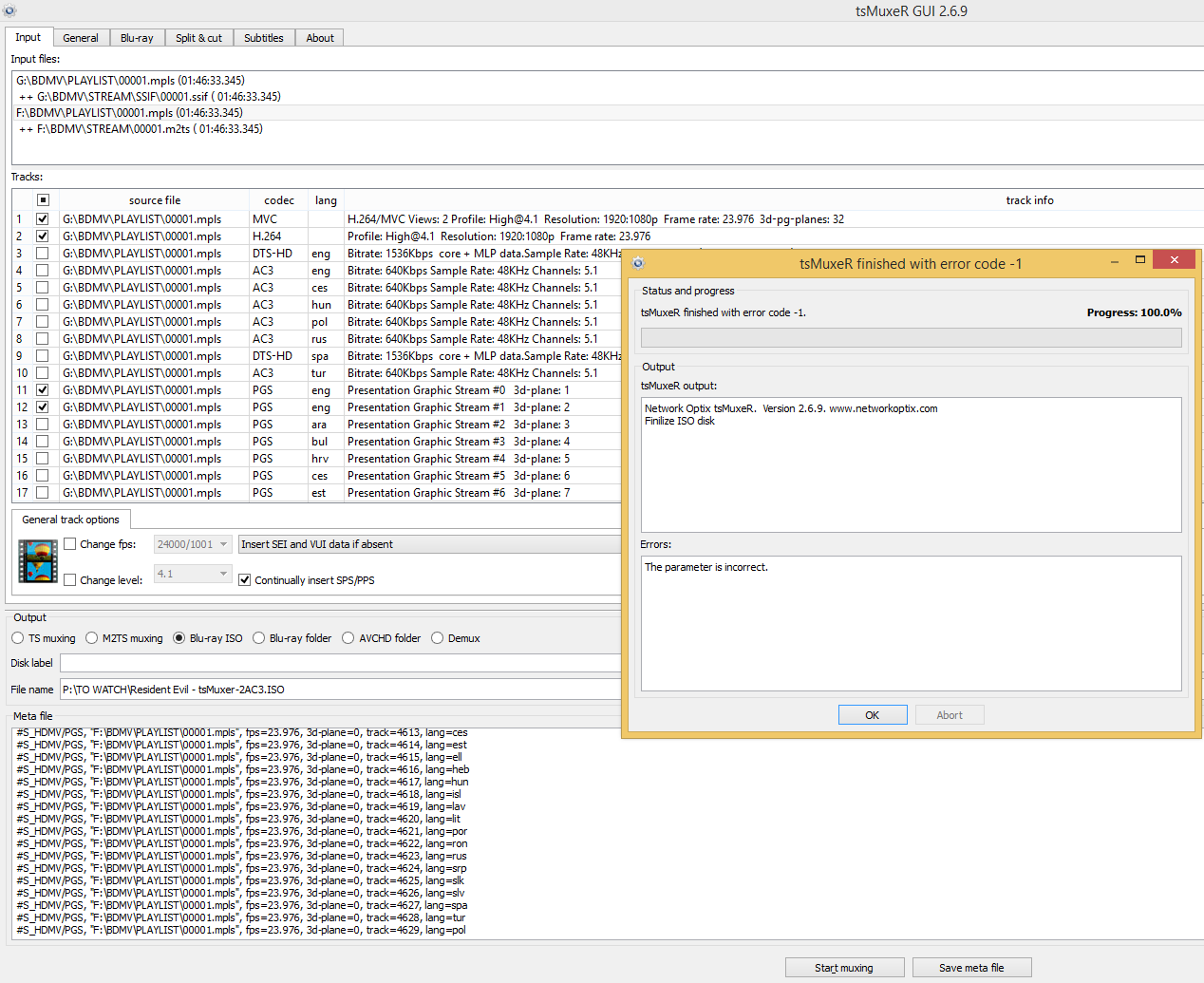 Tried it with tsMuxeR version 2.6.12 and I got this error