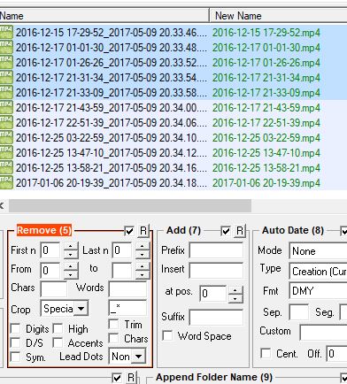 This is a great program and what I've been looking for. Some unknown process is renaming video files on my wife's S8. There's a whole batch that is named 2017-05-09 20.31.22 going to 2017-05-09 20.35.46. Then there's another batch (some duplicated but not all) on the date 2017-09-30 21.47.27 going to 2017-09-30 22.29.36. I got rid of all the dups just by sorting by size and deleting, but now no photo service will put them in the right timeline. Since there's no EXIF info, the only date I could find was the Encode date in Mediainfo. I was set to manually rename hundreds of files!!