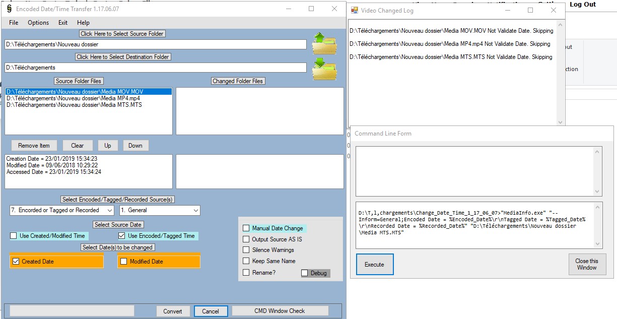 I can't seem to get this program to work anymore. The mediainfo encode date is there, and the Modified/created date is still changed by something. What are the settings to retrieve the encode date to rename the file to that date, and change the modified/created date to it also. I've tried every choice combination!