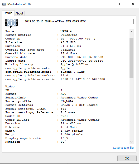 (The real recording date is 2018.12.14, not 2019.05.20 as indicated in Encoded date or Tagged date).