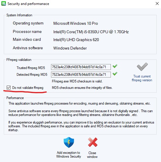 I'm also allowing to disable ffmpeg.exe checksum validation.