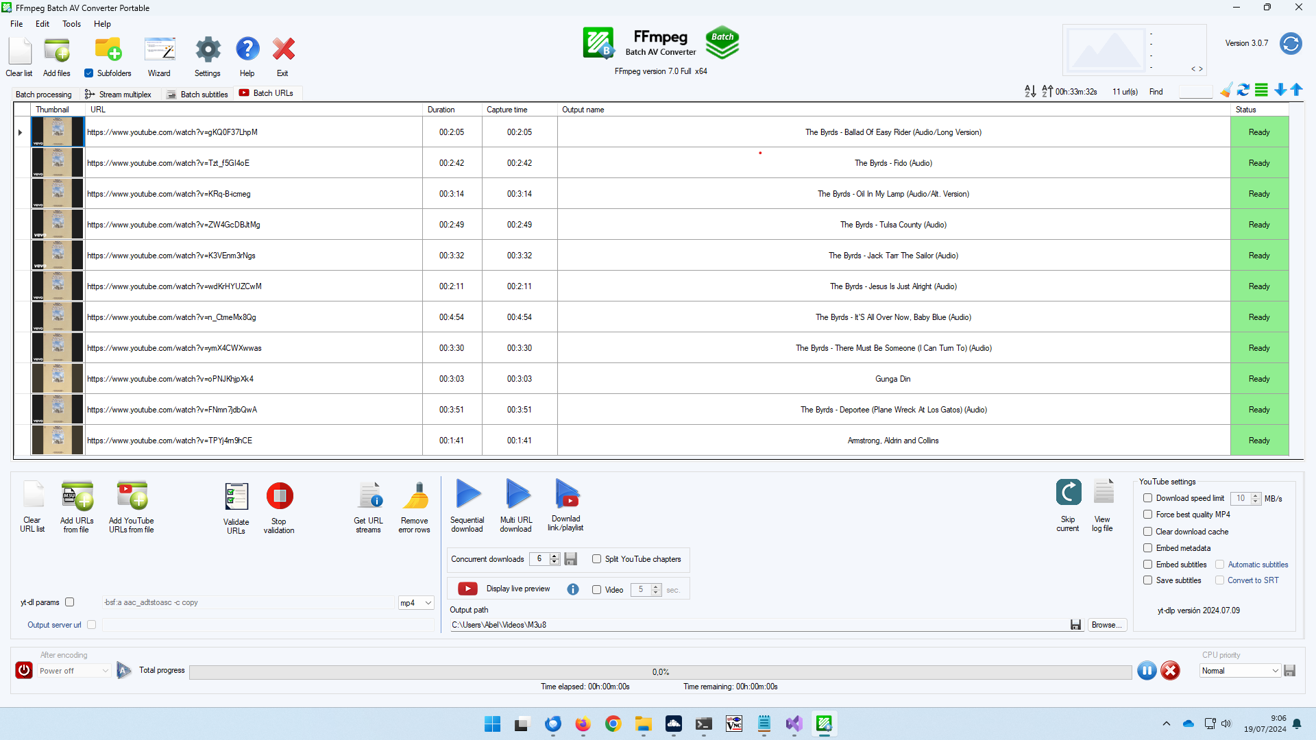 It doesn’t matter if I load “Ballad Of Easy Rider 1” or “Ballad Of Easy Rider 2”. Ffmpeg Batch AV Converter shows all the files but when it “Validates The URLs” it shows eleven copies of the last song on the list.