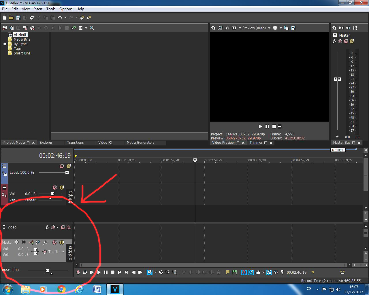 the Interface of Vegas 15 PRO being like this