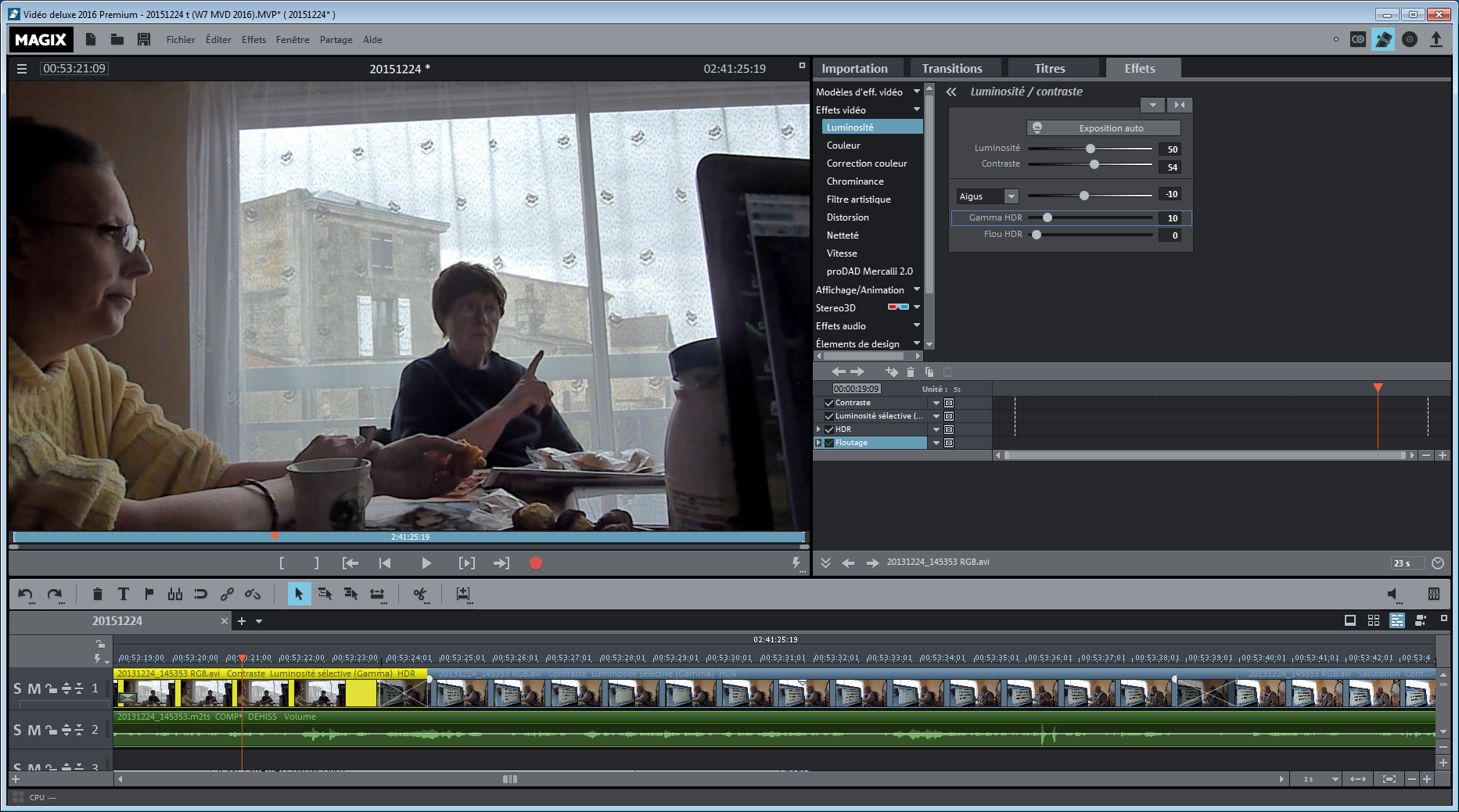 So, I installed DaVinci Resolve, and I've been playing around yet again... that thing is impressive : even if the free version lacks some components, it seems already extremely capable as it is. But the interface isn't particularly intuitive, and feels kinda buggy (sometimes the video preview stops being updated for no reason, or it's the histogram, or the timecode gets scrambled, stuff like that).You can get more advanced with secondary color correction , masks , power windows/tracking in resolve - it depends how far you want to go and spend time learning. Resolve has a free version now, but it's very powerful for color work. It's the gold standard in hollywood for many years. But it can be a challenge and time consuming matching scenes for consistency and balance especially when lighting and sets are not controlled such as in the majority of home video. Professional colorists absolutely hate home video - because the source footage is so difficult to adjust compared to what they are used to (compared to camera raw footage, high bit depths, professionally shot and lit, or CG) . With raw footage, you have 10x more amount of freedom and control, you're not limited by crappy compression , or noise or bad lighting