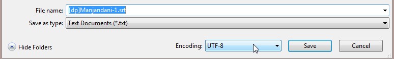My Mother Tongue is Telugu an Indian langugage. While making the srt files i save the notepad as UTF-8 characters option