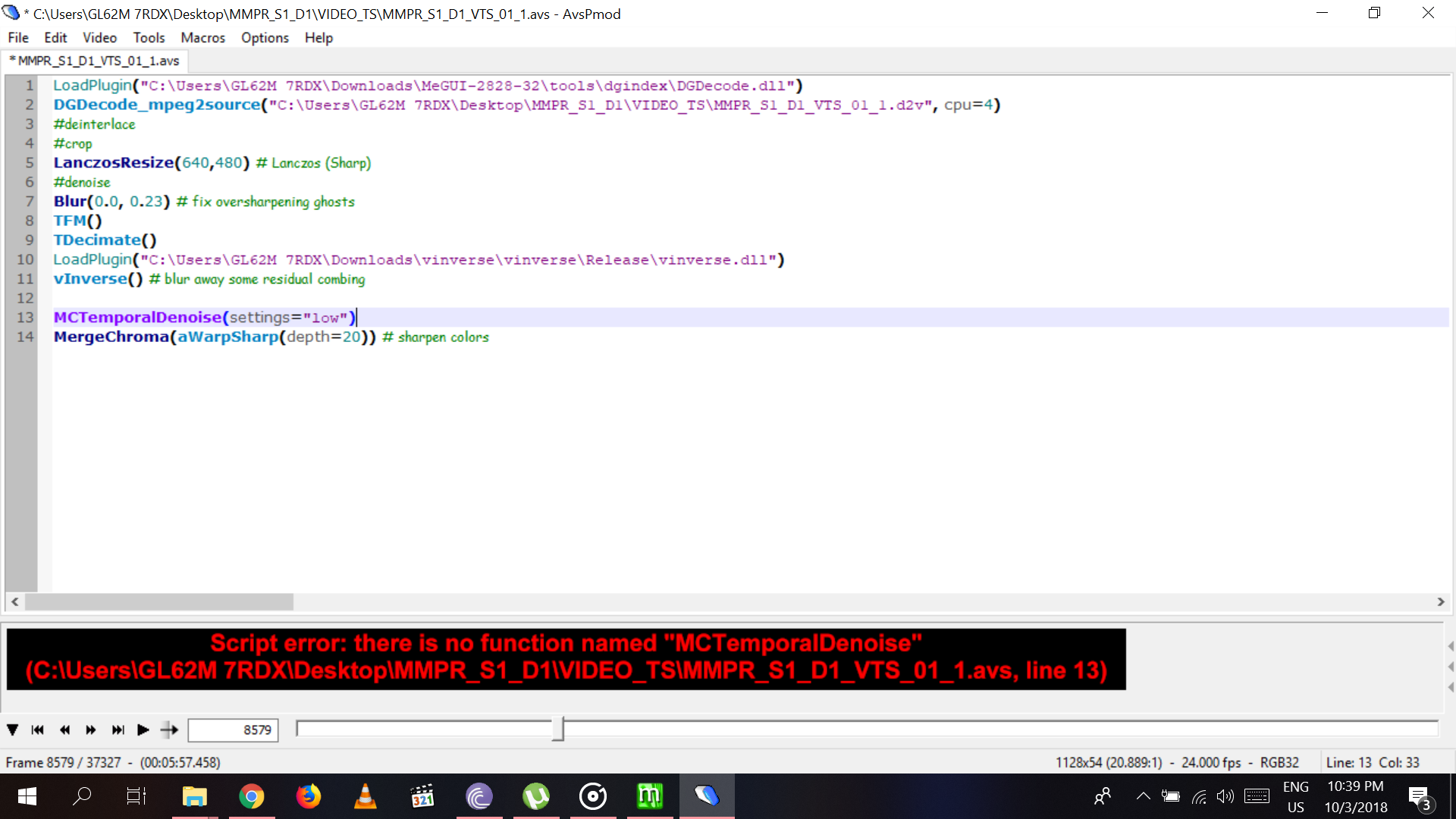 MCTemporalDenoise.v1.4.20.avsi Filter returned invalid response to CACHE_GETCHILD_CACHE_MODE.266624824 (MCTemporalDenoise.v1.4.20.avsi, line 831). It appears when i load mctemporal filter and i cant use it. help me.