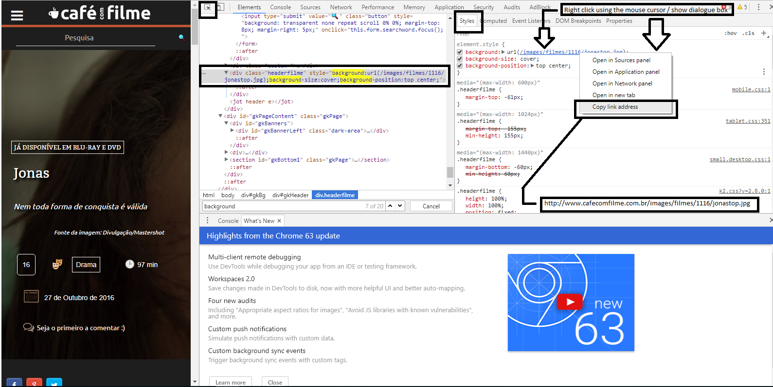 You can search the source for keywords such as "background" or "jpg"Code:http://www.cafecomfilme.com.br/media/k2/items/cache/8e4e30c8fc08507de1b0b5afc7d32a85_XL.jpg