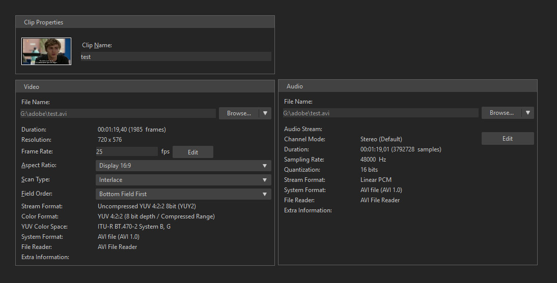 Recording in 720x576 PAL, 25fps interlaced.