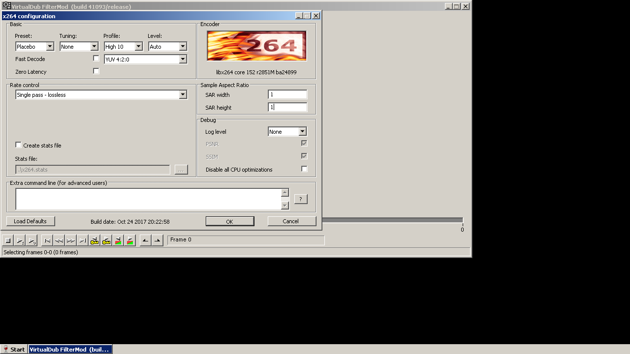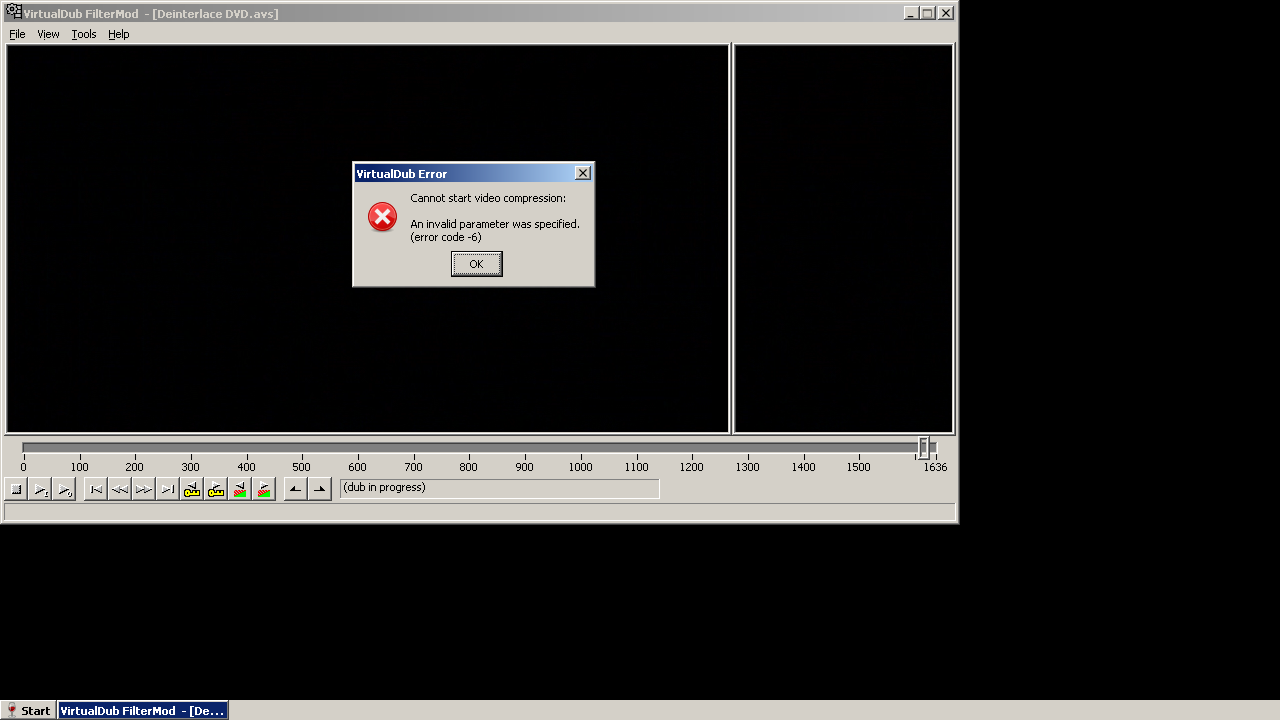 Paste it into your text editor. This is what I get:(This is better for posting than a screen shot, too)Code:[*] Beginning dub operation. [i] Dub: Input (decompression) format is: YUV420. [E] x264 [error]: high10 profile doesn't support lossless [E] x264 [error]: x264_param_apply_profile failed [E] Error: Cannot start video compression: An invalid parameter was specified. (error code -6) [*] Ending operation.