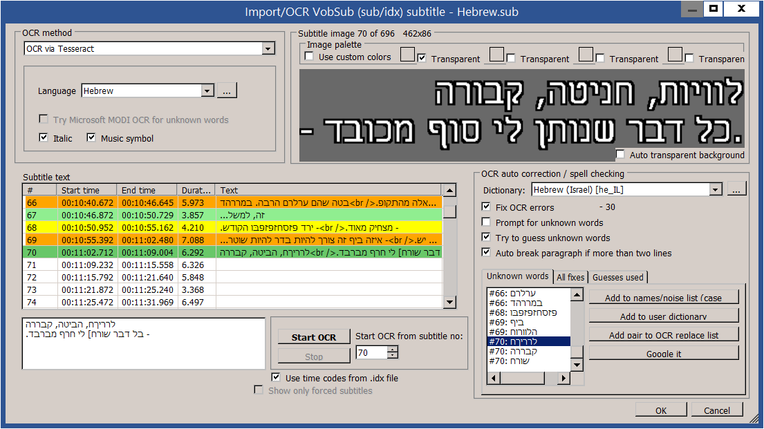 I'm trying to rip subs in the Hebrew language from SubEdit but it seems to OCR two lines at the same time. What should I do?