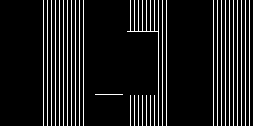 You can see there is a vertical bar indicating the transitions every eight pixels. And the flat shaded box shows no transitions, as expected. Now we call mt_expand() four times: