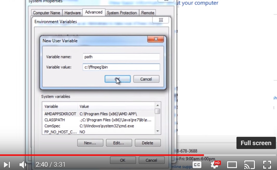 Is there a way that I don't have to have ffmpeg.exe in the same folder as the videos because I following the directions in this video got ffmpeg always working.