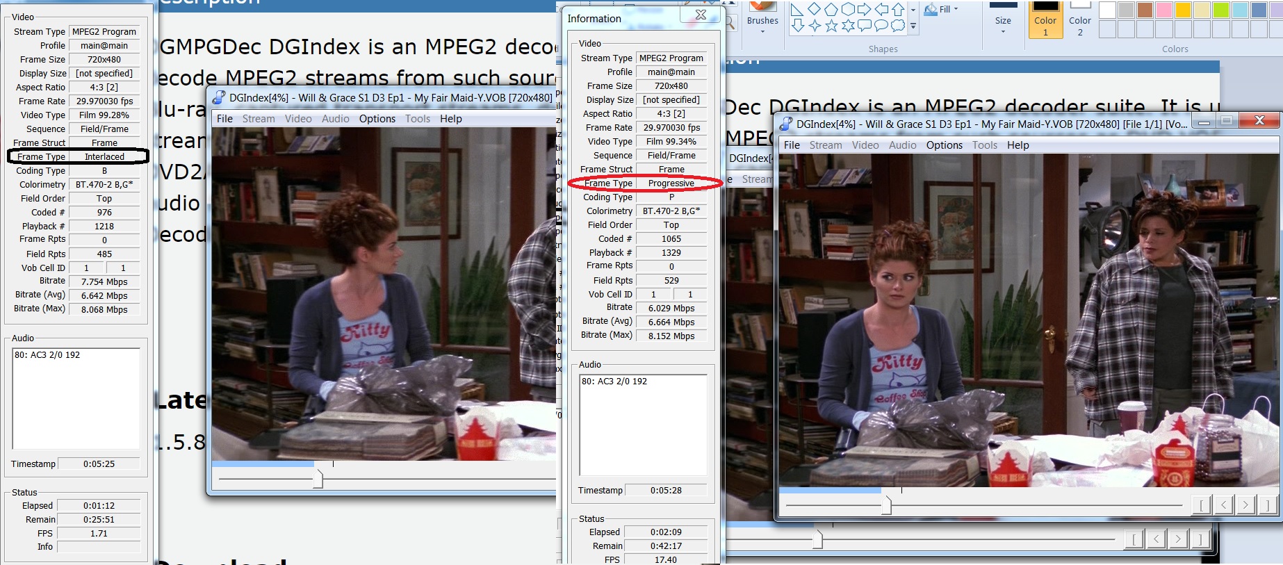 So all of these I need to use the IVTC (inverse telecine) technique to remove these interlaced lines during playback. Looking back at those codes that I posted, the only one that said progressive was Frasier.