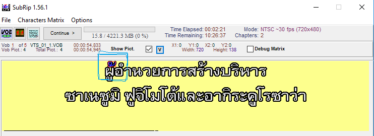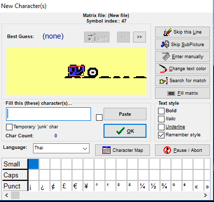 I am using the last version of Subrip 1.56.1, to rip some Thai language subtitles from a DVD. But when I run into some characters with accents above the letters, SubRip sees this as a discrete line, and won't let me change it. Is there some trick to redraw the boundaries of each line?