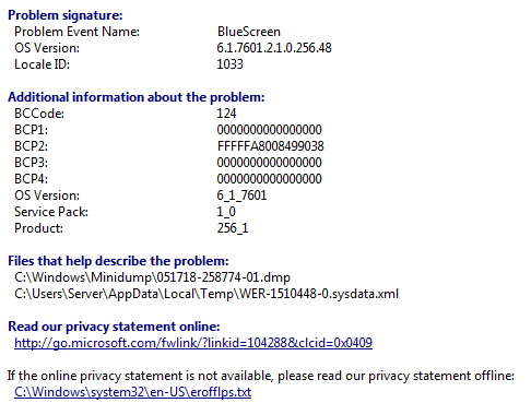 Also, when Windows boot back up it displays a "Windows has recovered from an unexpected shutdown" message with the following problem details: