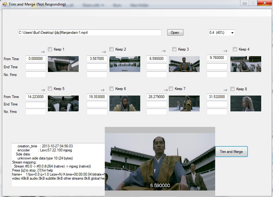 Okay just for clarification... I set the program to show ALL scene changes in a separate image window. Thats what the 8 images are. They are separate scenes all by themselves.