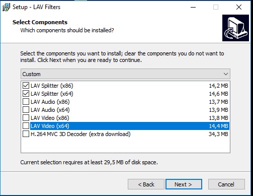 to avoid mess: I don't wont install LAV VIDEO AND AUDIO FILTERS. By default the installer suggest to install all (except the H.264 MVC 3d Decoder). I need install only the splitter and this procedure have to be done from another cats that they are very ignorant. So I try to take to they the installer that suggest the installation of the splitter only, and not all the rest