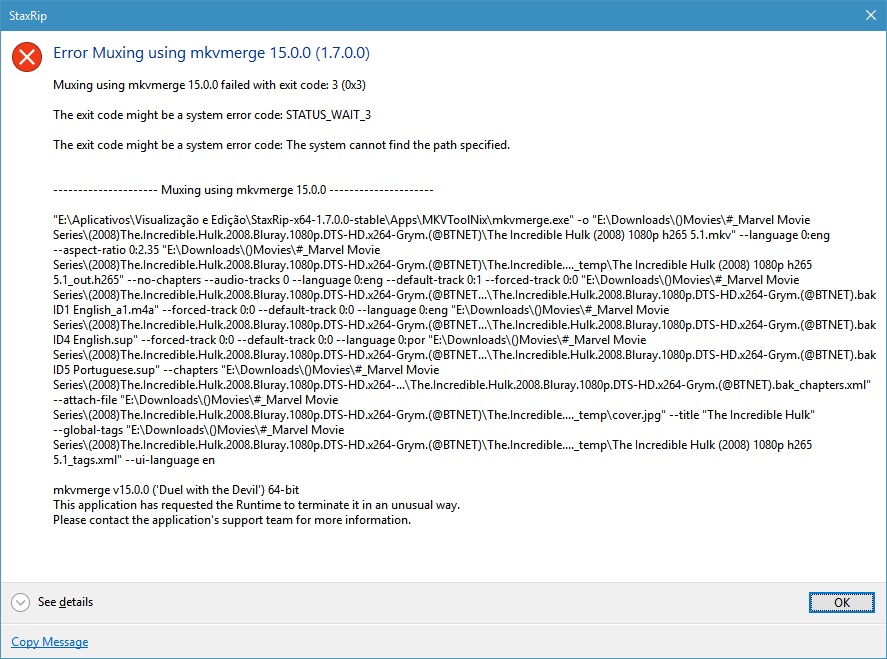 I'm trying to convert my video files to h265 using my GTX970 with StaxRip. Tried some configurations of video quality and audio and all went well, converted the files without issues, them deleted it and tried another options to see what have the better image quality for the size I want, all ok until I tried to add a cover to the file in the Container Configuration section. The program says that covers need to be named cover, small_cover, cover_land or small_cover_land and to be in jpeg or png file formats. I did it, but still when the program finishes encoding the audio and video and go to pack all together I get this error: