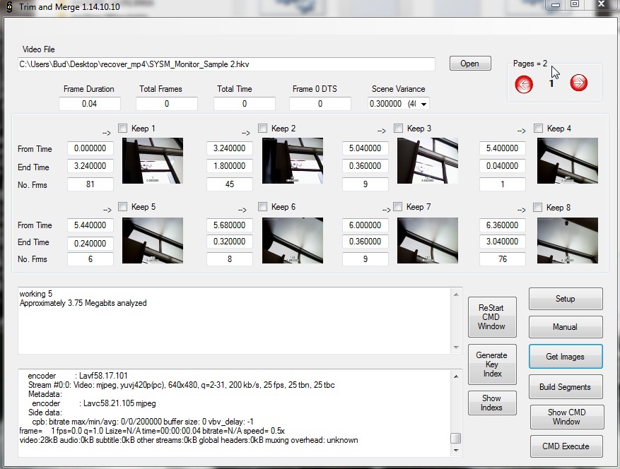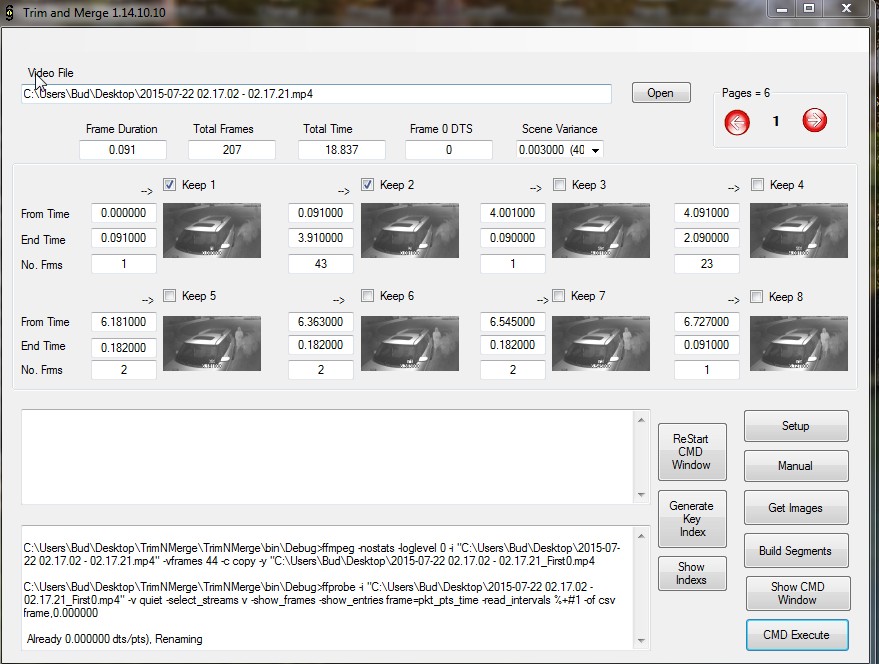 It will also produce a list of all frames and their timestamps to be used manually if someone wishes. So far the first 2 image,scenes information can be adjusted manually for trimming an entire segment.