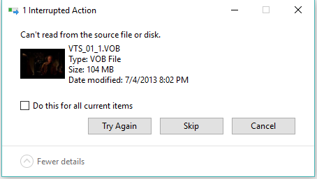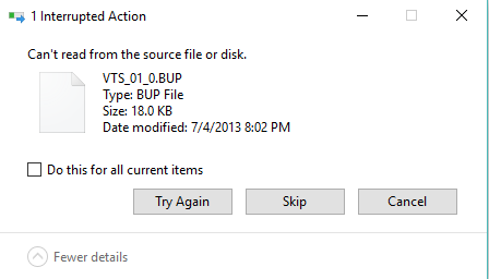 I've tried copying the files to my hard drive directly, and here's what I get: