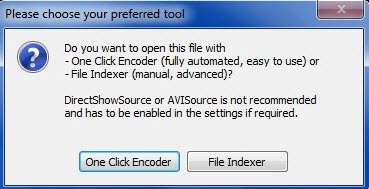 The dialogs from the top are clearly a result of using the "AVS Script Creator" (Ctrl+R), there would be no reason for a choice (not even "OneClick") if you already start in the "File Indexer".