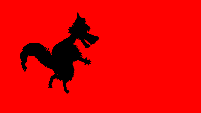 Overlay the red image over the wolf image using the wolf image itself as a transparency mask (usually called an "alpha channel" or matte in video):