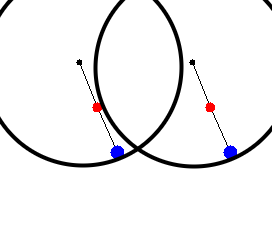 A further complication when comparing the two pendulums is that the motions overlap -- at least in the sample video. And at times they can extend beyond the edges of the frame. The circular outlines mark the approximate extents of the two pendulums motions: