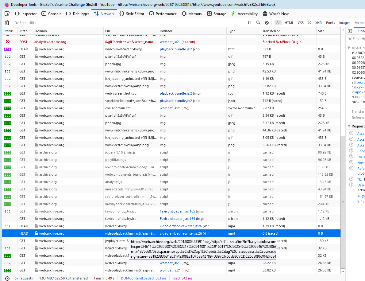 Hello, I created an account just for this. I am trying to download a 1080p YT video(2, actually) from wayback, but it never plays in the HTML5 yt native player, it only plays in the dogshit JW player. Why is it dogshit, you might ask? Because the player downgrades the video from 1080p to 480 p or lower. But the original video that was archived should be able to be viewed in 1080p, right? Except I havent found a damn way. The only thing i could think of is to disable JW player somehow then use an extension to snatch the 1080p version(which I've tried to no avail) Can you please find a way for me to get the original 1080p version downloaded? Thanks! Here are the links to both things I want downloaded.