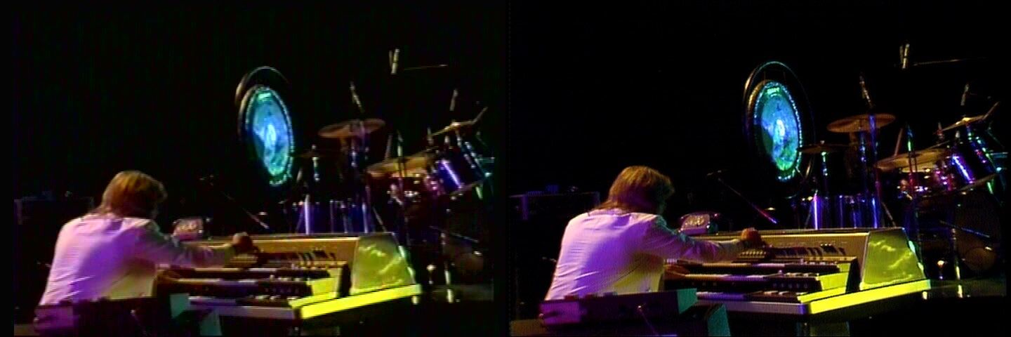 Unfortunately, the better source is from a DVD which features two concerts mixed together, and it lasts less than 1hr; the other source is the uncut 2 and half hrs of a single show, that's why I need to work with the bad-looking one. Anyway, I'll try to post some snippets (I'll have to look at the DVD and find out which scene is from the concert I want to tweak).