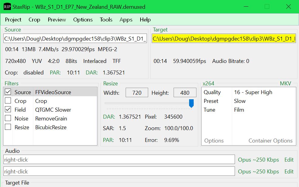 Thank you. Now I just need to put this new method to good use in an experiment, and encode an entire 20min episode, to see how it all turns out. The only other thing I do also have to play with, is the PAR, to try and get it to NOT squash, like it has been doing (for a reason I am yet to learn about).