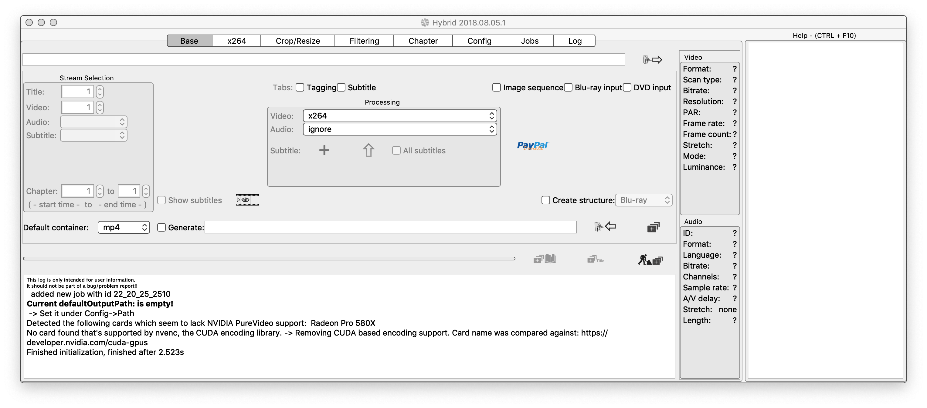 You clearly have a problem. You may know a lot about video, but you read very poorly, or you have a need to reply to anything I say. Of course Hybrid is a GUI. It surely is powerful. But it is cumbersome. For example, this (below) is the opening screen in Hybrid for Mac. For anyone who has not used Hybrid before, how do you select the input video file?