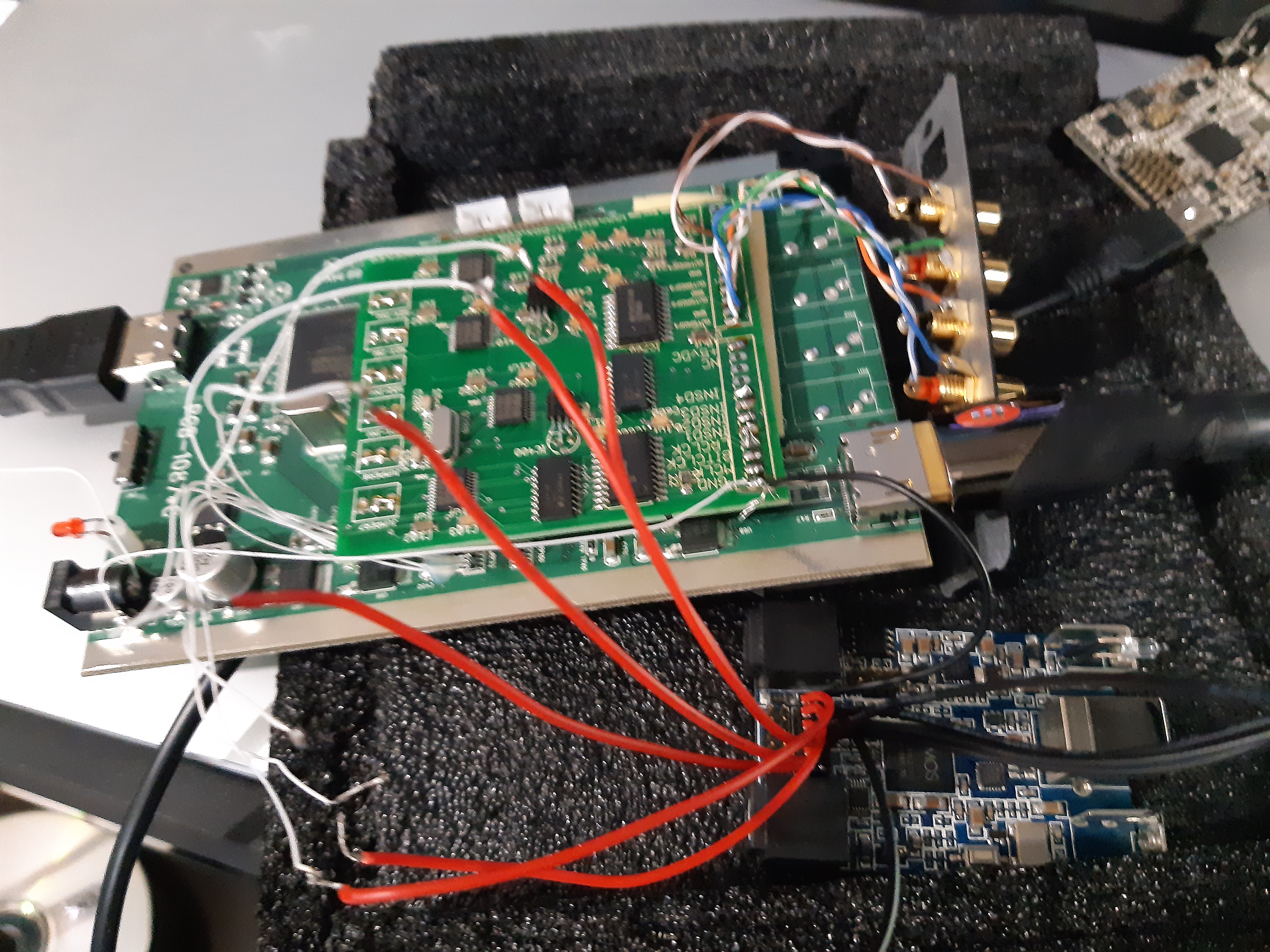The audio is captured right before the analog section in i2S format. A i2s to SPDIF transceiver was giving the 8 LPCM channels in 4 SPDIF pairs.