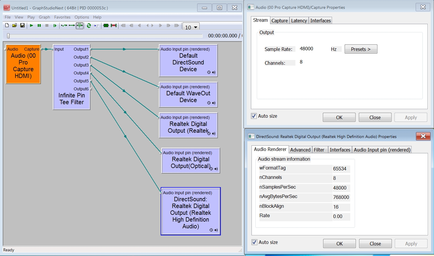 I can see that the 8 channels are being succesfully captured but I take as output only the front left/right when using Capture Express or MultiAudioCapture.