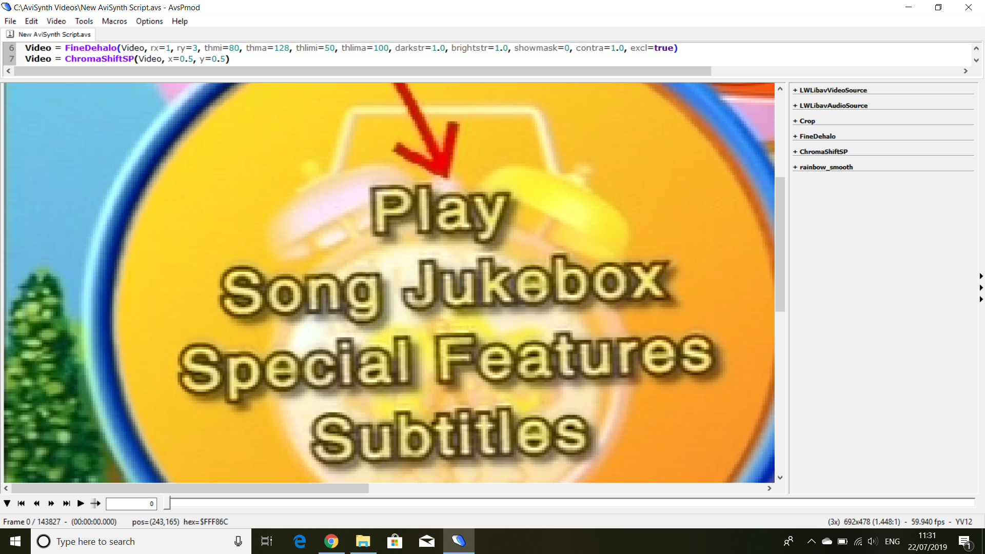 Hello, I've attached a sample video. There's still a problem. Despite adding FineDehalo and ChromaShiftSP filters, the edge artifact still exists on the left. I've also posted cropped and resized form. Thanks.