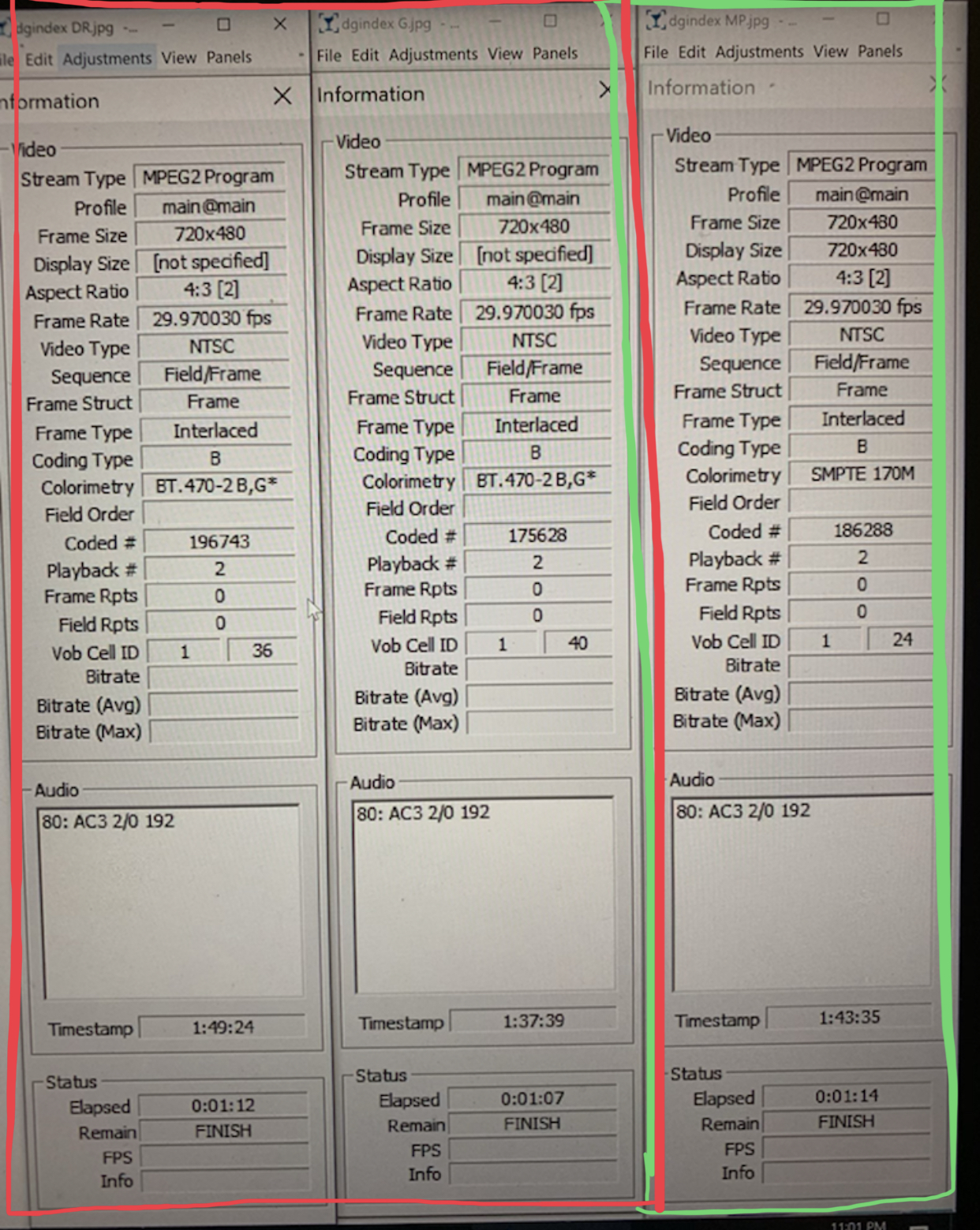 Here's the two nonworking .d2v files on the left, then the working one on the right: