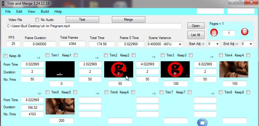 This results in frame zero time of 0.007012.Code:ffmpeg -ss 0.015312 -i "C:\Users\Bud\Desktop\oh Im Pregnant.mp4" -c copy output1.mp4