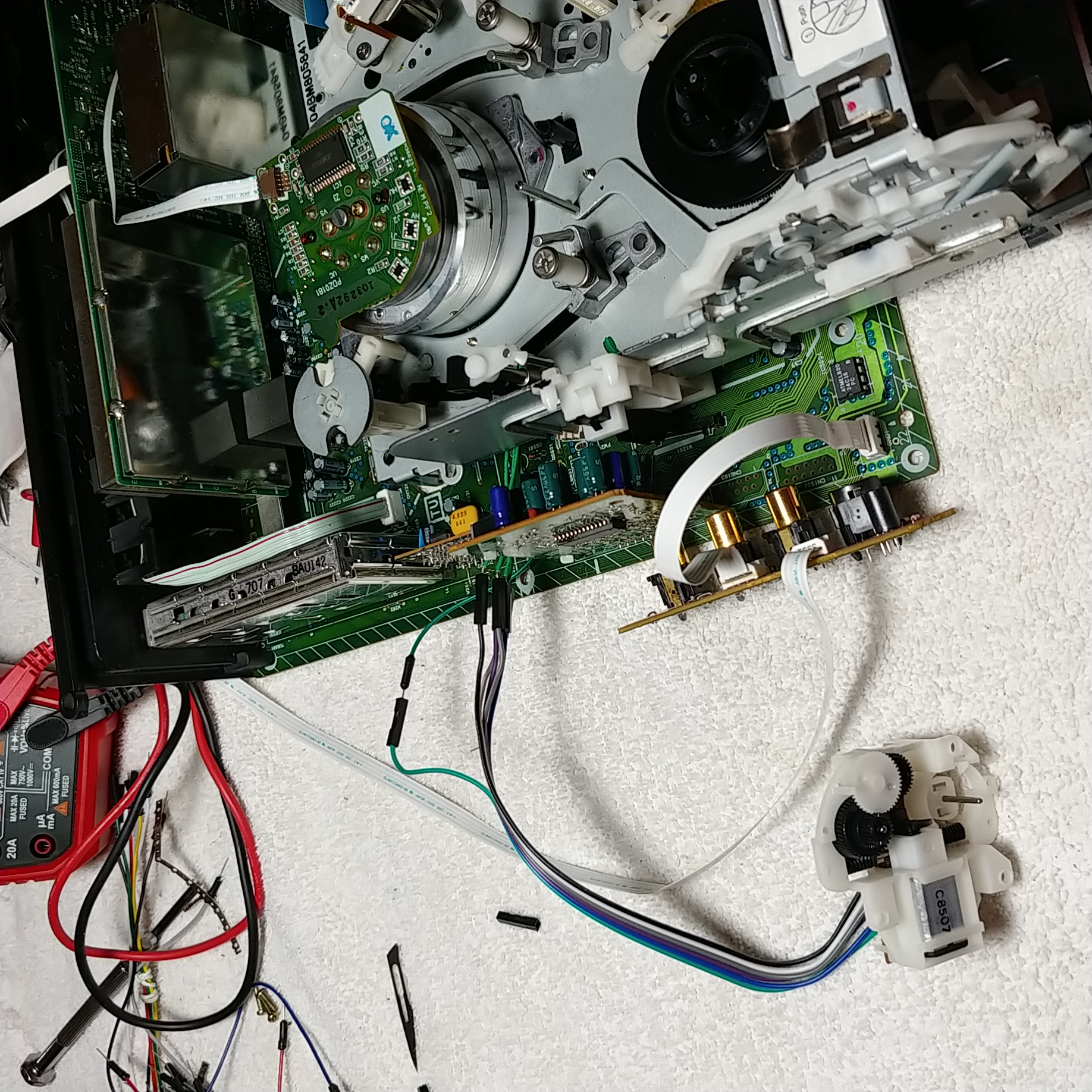 I think if we can find the right CPU pins to attach to, we could bypass the FF and RW signal somehow so the DD doesn't move but will initialize. I tried simple things like running the FF and RW pins to ground, but that didn't fool that wily VCR LOL