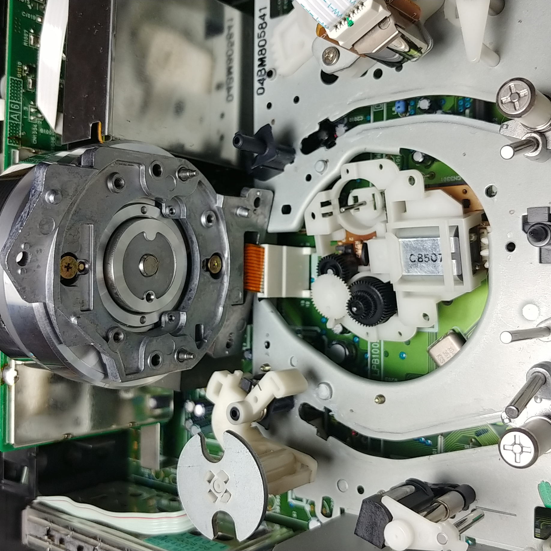- First, we have to break the transmission of movement from the DD motor to the gears then to the drum assembly by physically removing a minimum of one gear from each side. One gear from one side to clear the video drum and one gear from the opposite side to clear the intermediate plate.