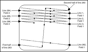 most people never truly understand the old interleaved tv standard. 262 1/2 lines are half the ntsc picture. there are another 262 1/2 lines that are the other half of the picture. those "frames" were divided into fields and the "fields" were broadcast as all the odd numbered lines then all the even lines from bottom to top. the tv's at that time had phosphors that retained their image just long enough to make a complete image during the odd/even presentation.