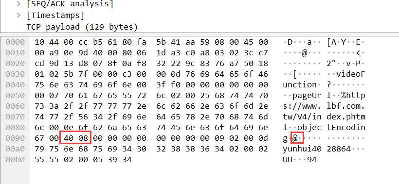 AMF3 object flag is 0x11Code:0000 80 fa 5b 41 aa 59 10 44 00 cc b5 61 08 00 45 00 .ú[AªY.D.̵a..E. 0010 00 94 4f bb 40 00 36 06 26 9a 3c c7 cd 9d c0 a8 ..O»@.6.&.<ÇÍ.À¨ 0020 03 02 07 8f 12 c5 18 37 4c 6e 38 61 cc 9b 50 18 .....Å.7Ln8aÌ.P. 0030 00 b5 92 12 00 00 03 00 00 00 00 00 60 14 00 00 .µ..........`... 0040 00 00 02 00 08 46 43 53 5f 53 54 41 54 00 40 00 .....FCS_STAT.@. 0050 00 00 00 00 00 00 05 02 00 01 30 02 00 01 55 0a ..........0...U. 0060 00 00 00 10 02 00 00 02 00 00 02 00 00 02 00 00 ................ 0070 02 00 00 02 00 00 02 00 00 02 00 01 33 02 00 01 ............3... 0080 35 02 00 02 32 30 02 00 09 e6 9c b4 e9 9b 85 e7 5...20...æ.´é..ç 0090 86 99 02 00 00 02 00 00 02 00 00 02 00 00 02 00 ................ 00a0 01 34 .4