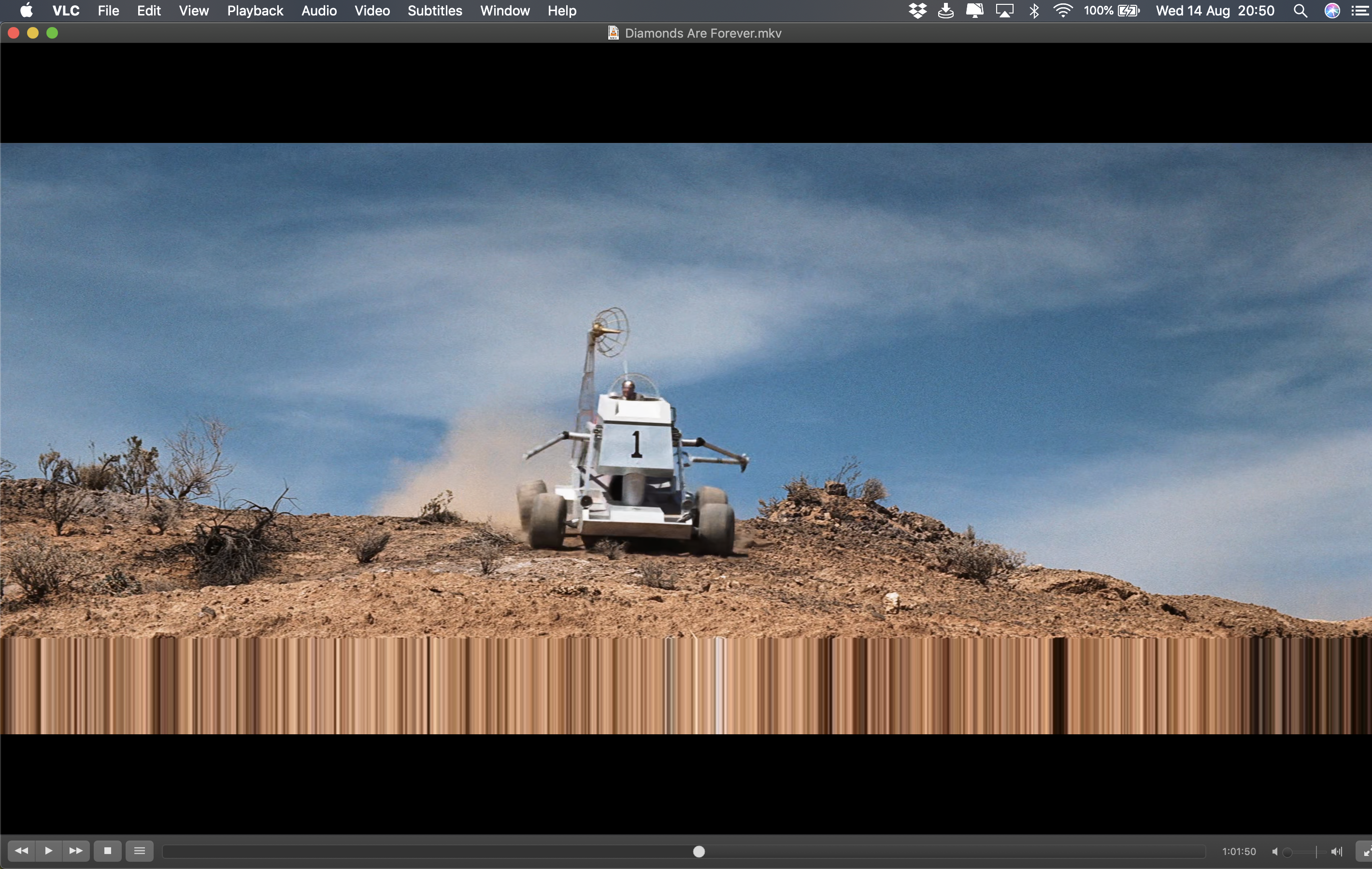 I'm a newbie and not sure which category/discussion to post this in. Would really appreciate some help. I'm having an issue on my father's 2017 macbook pro. For some reason certain video files (so far, rather weirdly, only a collection of james bond films I have downloaded) are playing normally, but with a very annoying graphics anomaly. The videos play with the bottom section of the video area, beginning at a seemingly arbitrary point, playing only in vertical lines. This pattern seems to repeat the pixels downwards from the latitude at which the graphical error begins. Not sure how else to describe it. I'm sure there's a name for this kind of graphics error, but I haven't been able to find it. For simplification I have attached two screenshots of what happens. The files are 2160p .mkv, encoded with h.265, and they are playing with latest version of VLC.