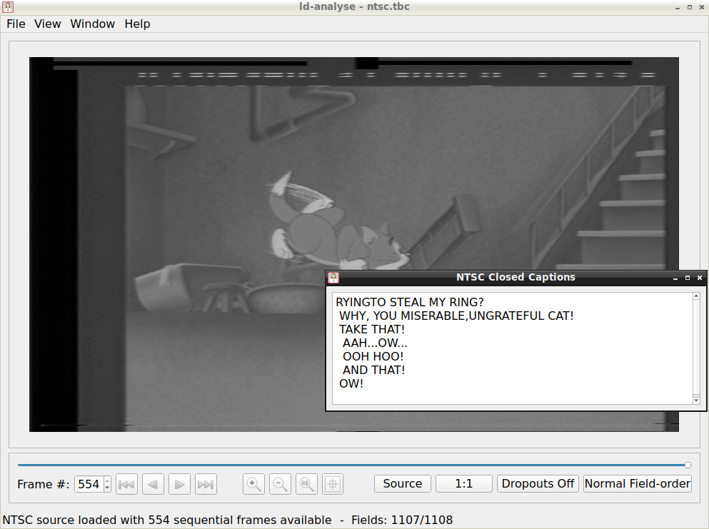 Also, this has been possible for a while it seems, but just came up during a discussion on the discord, you can use the ld-process-vbi tool to decode NTSC closed captioning from the tbc file. After running that on the .tbc you can see subtitles in ld-analyse. It's a bit clunky though, so you have to go frame by frame for it to display properly. Another user is working on a tool to translate the subtitles from the json metadata file to something usable by other tools.