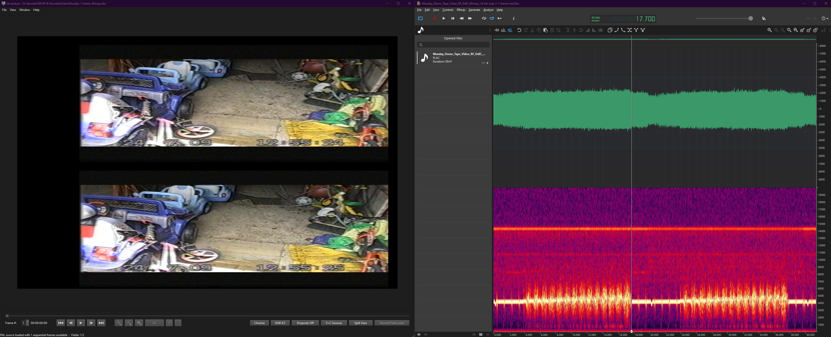 Now for context, this is mainly combined into a streamlined workflow today called the clockgen mod, and the MISRC that superseeds the DomesDay Duplictor for usage on formats like VHS for example, which is a multi channel format 2 RF paths for Video/HiFi, ware as Video8/Hi8/LaserDisc however are a single channel capture format for there Video/HiFi audio (in simple terms, there is factors to each format) so we have with current capture 2x RF and 2x Baseband for your RCA auidio output for Linear and or for a hardware output copy of the decoded HiFi audio, on pro decks this expands to 4x baseband for 2x linear and 2x hifi support.