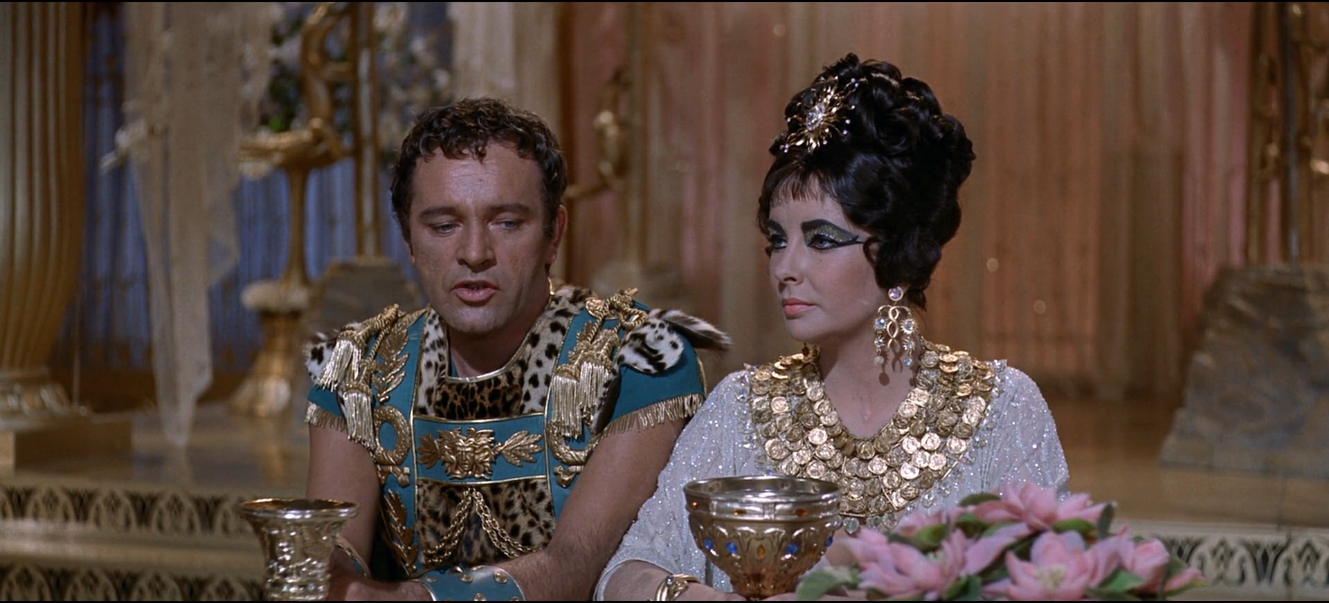 All due respect to your personal experience, LetThemEatCake: but the Cleopatra bluray I borrowed and played yesterday looks nothing like those cyan/magenta tinted screen caps with ghastly grey skin. I'm very picky about color, particularly skin tones and clean whites, so when I loaded the disc I was prepared to be horrified (based on those screen caps). Instead, what I saw (on all three of my TVs) looks very close to the "corrected" caps thoughtfully provided by poisondeathray. Clean whites, gold and silver, skin tones of all races correct even with many people in the frame: just a tad less saturated. I considered adjusting my display but then decided it looked perfectly OK as is: the restoration team subtly bumped saturation up in scenes where it would be appropriate, and down a bit where it might intrude. I don't doubt you're seeing something awful on your own system, but it really does not look bad at all on mine (which is hardly state of the art).