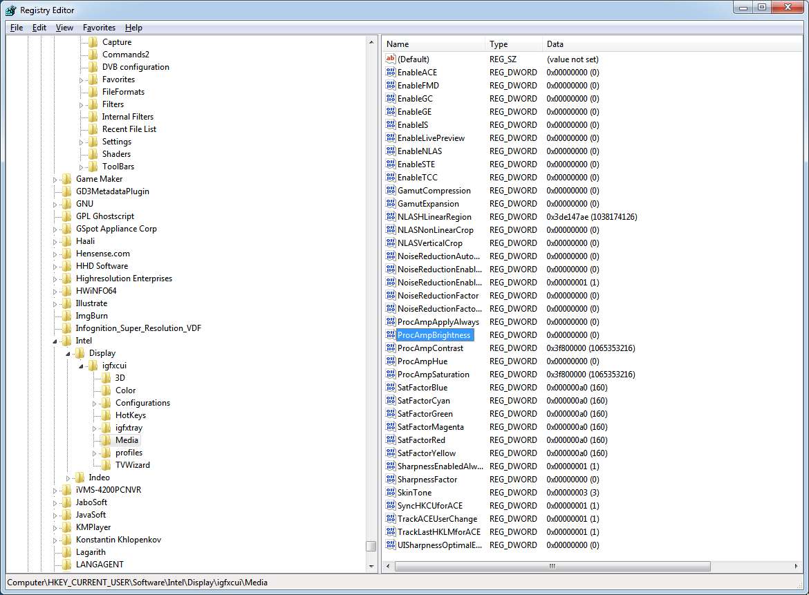 I don't quite understand what Intel Graphics Control Panel really do. It changes colors in a way that no media player and no monitor tweaking I've ever seen can come close to. I can tweak a particular color (or two) without affecting the others, for instance. For some reason, certain apps play video files with the Intel Graphics Control Panel automatically "in charge" of colors (PowerDVD, MPC-HC), and in such cases playback and even pic captures will reflect the color presets (if only those apps could make a new file with those color changes inside it, just like they can do with pic captures!). On the other hand, others apps just ignore it (like VLC). -