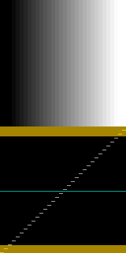 You can verify for yourself that Color Tools shows the superblack and superwhite pixels crushed.Code:BlankClip(width=8, height=256) # RGB black ConvertToYUY2(matrix="pc.601") # full range StackHorizontal(last, last.ColorYUV(off_y=8)) StackHorizontal(last, last.ColorYUV(off_y=16)) StackHorizontal(last, last.ColorYUV(off_y=32)) StackHorizontal(last, last.ColorYUV(off_y=64)) StackHorizontal(last, last.ColorYUV(off_y=128))