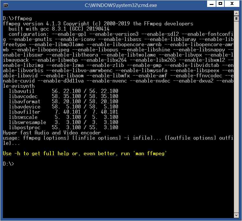 ffmpeg version N-95160-g9fdc2c7bc4 Copyright (c) 2000-2019 the FFmpeg developers