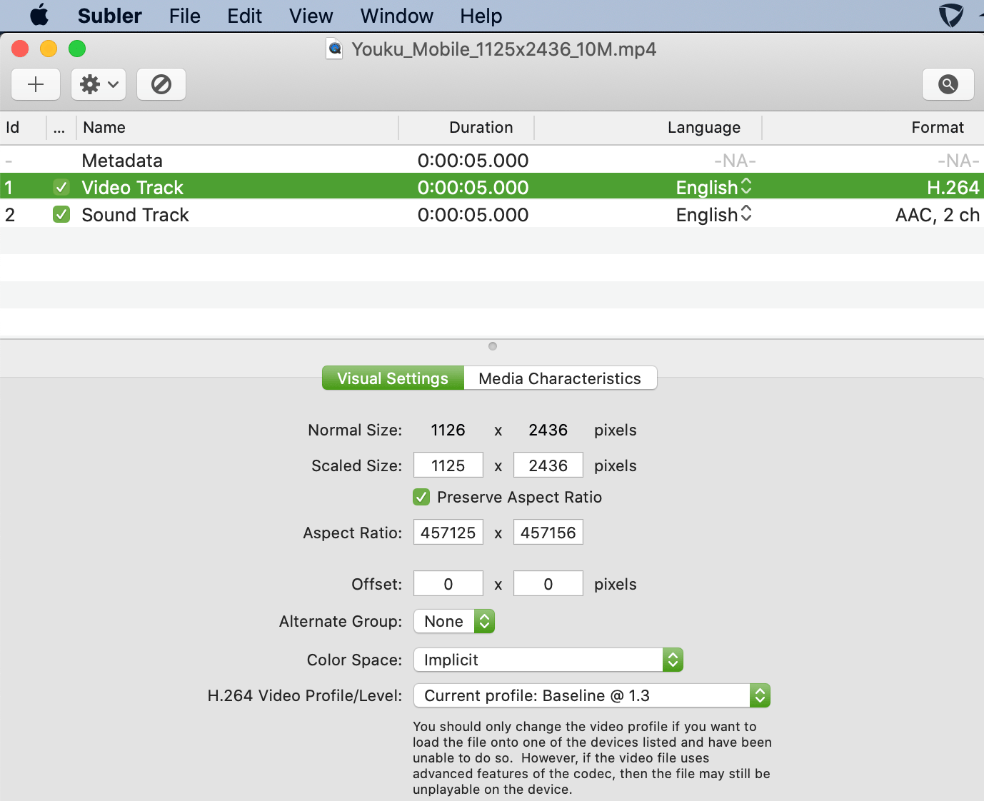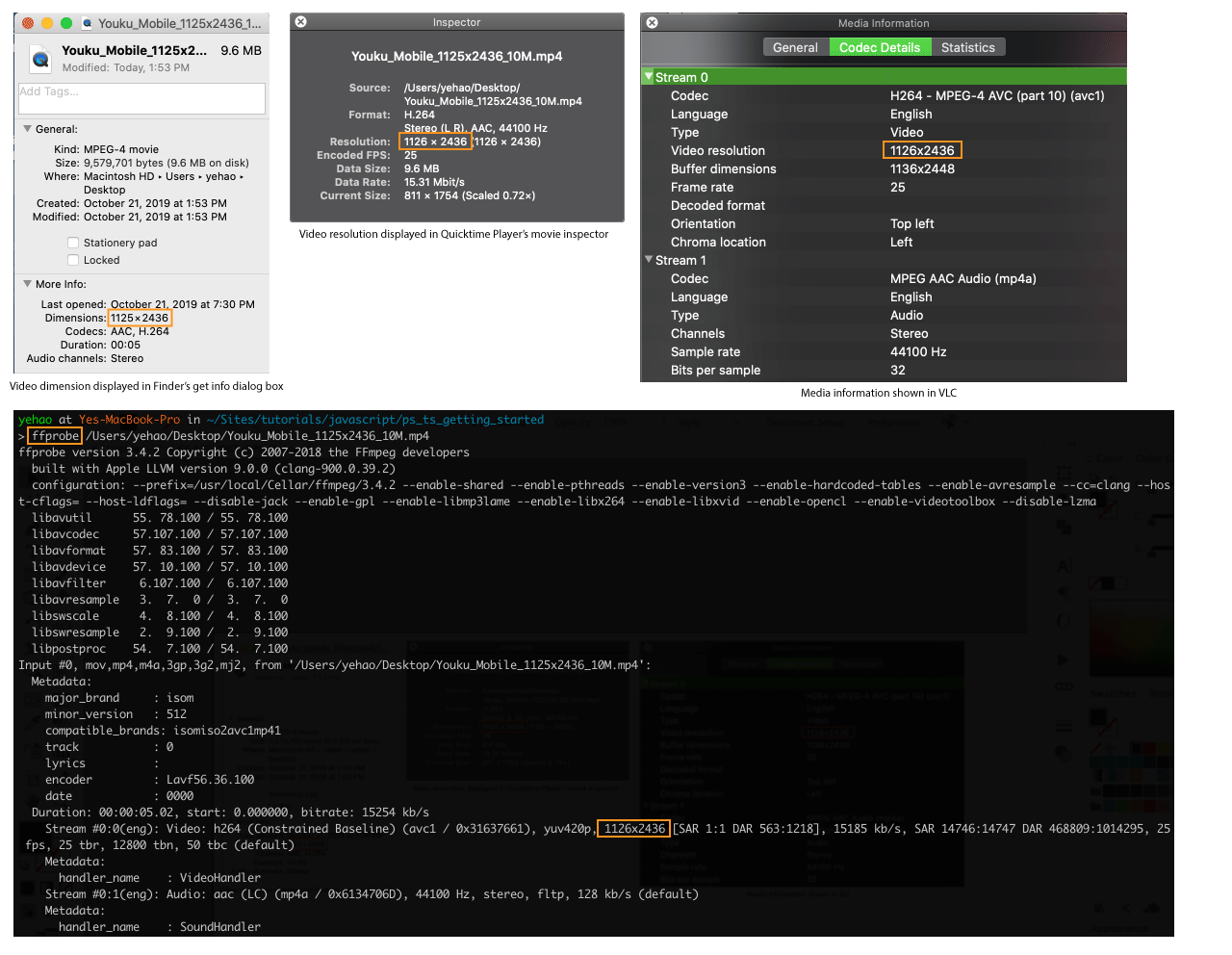 When I use Get Info in macOS, it's dimensions is 1125x2436. However, if I open the file in Quicktime Player or VLC and check the metadata, they all display 1126x2436 instead.