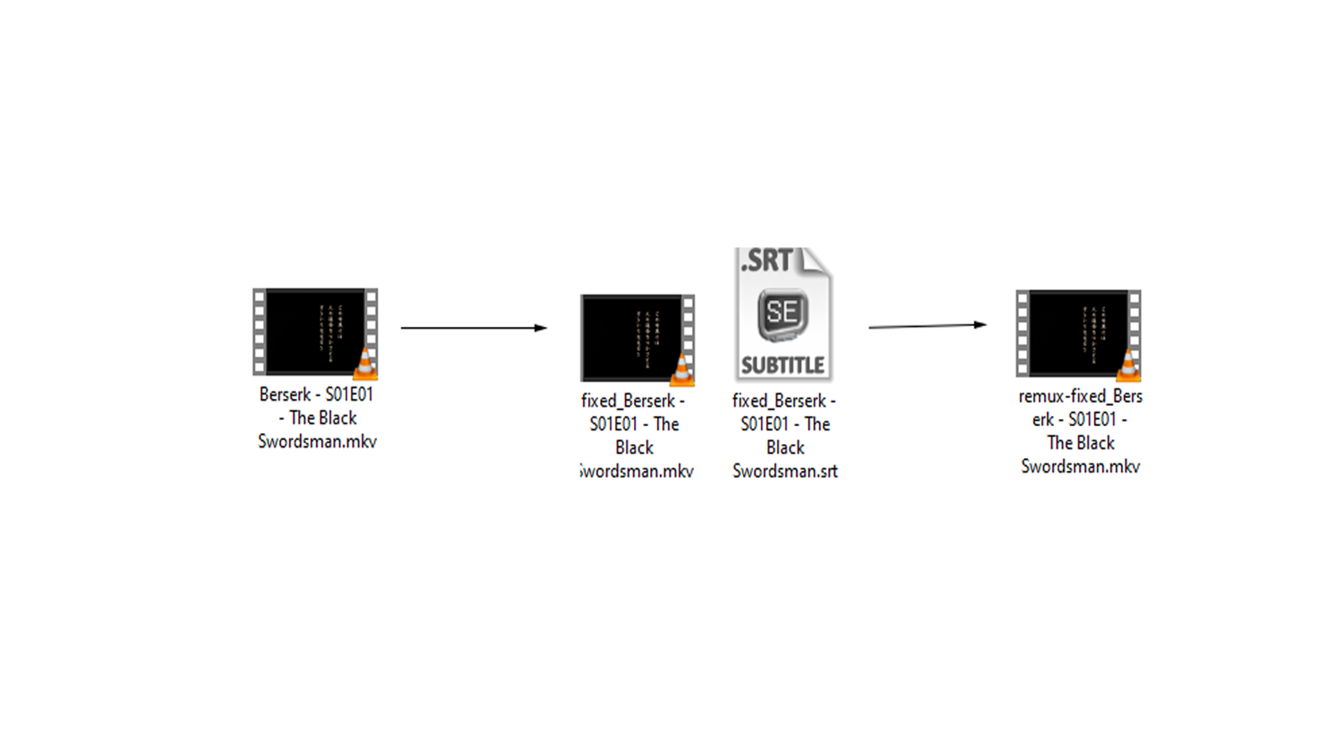 Now I force in an Srt externally to the new (fixed_) file. To do that I transfer the fixed MKV and external Srt into a new folder and use this batch.