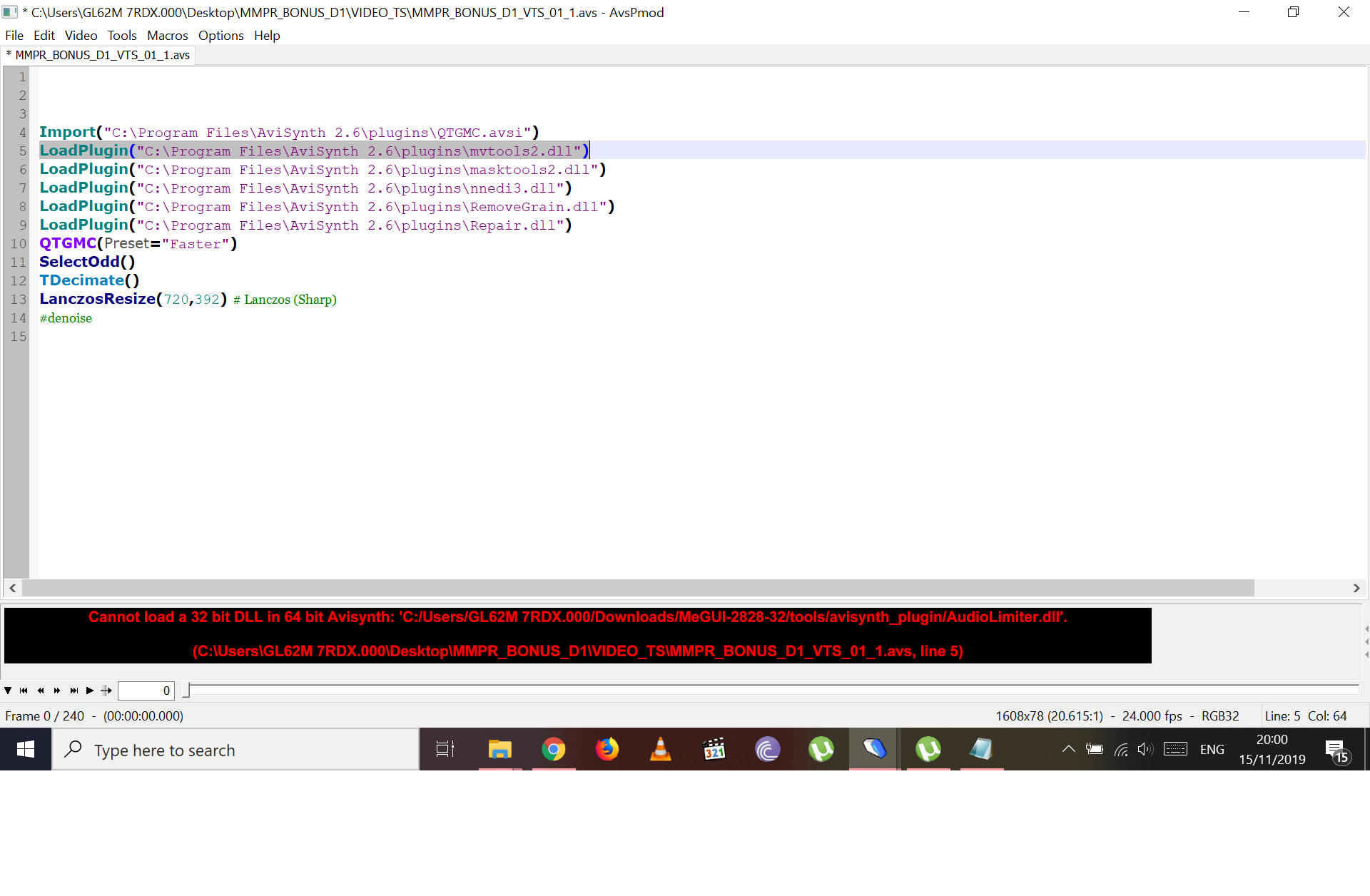 Video Compression stopped working on VirtualDub.